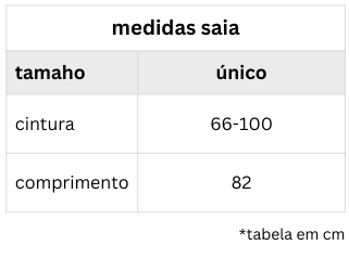 Saia de tricot tamanho único composta por: 70% Viscose e 30% Poliamida.